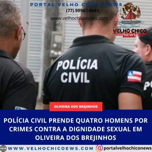 Quatro homens, com idades entre 20 e 74 anos, foram presos preventivamente durante a Operação Pequena Sereia, deflagrada pela Polícia Civil no município de Oliveira dos Brejinhos. A ofensiva, iniciada na tarde de quinta-feira (23) e concluída na manhã desta sexta-feira (24), tem como objetivo combater crimes contra a dignidade sexual praticados na região.