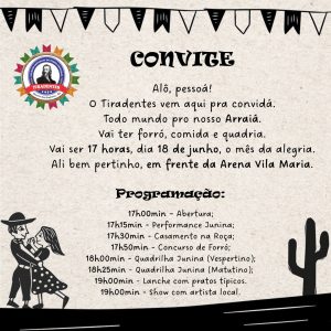 No dia 18 de Junho de 2025, às 17 horas, no espaço em frente à Arena Vila Maria, ocorreu um dos eventos mais esperados pelo Colégio Tiradentes e por grande parte da comunidade brejinhense que, todos os anos, vem participar de forma muito animada do Arraiá Tiradentes, agora mais conhecido como Arraiá do CETIT.